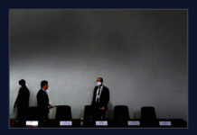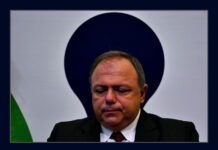 O ainda e então ministro Sérgio Moro chega ao auditório do Ministério da Justiça para anunciar sua saída do governo. Foto Orlando Brito
